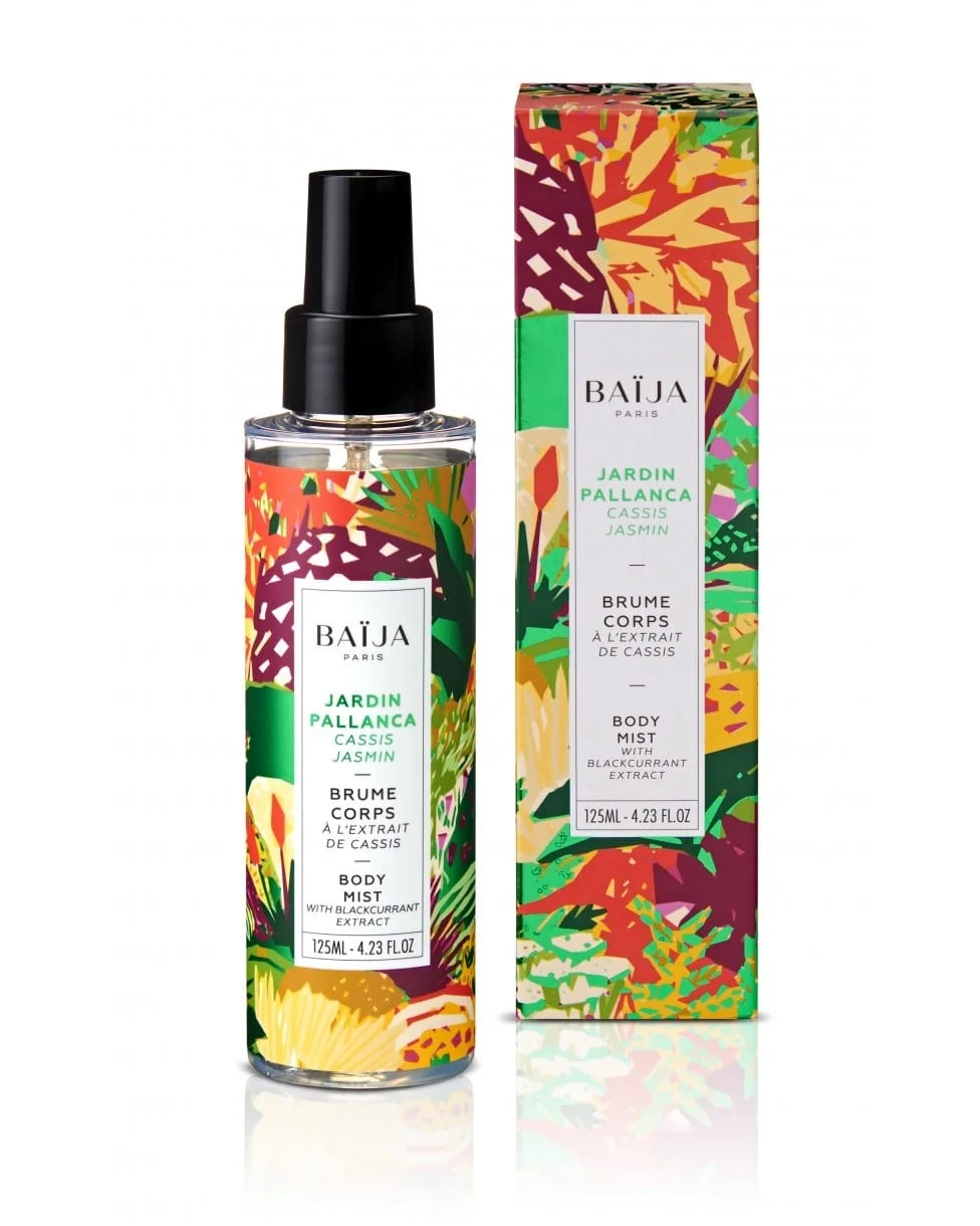 Brume Corps Jardin Pallanca 125ml, Baïja. La brume est  sans alcool, elle s’utilise sans modération sur le corps et les cheveux et laisse un délicat parfum de cassis, jasmin et musc blanc.