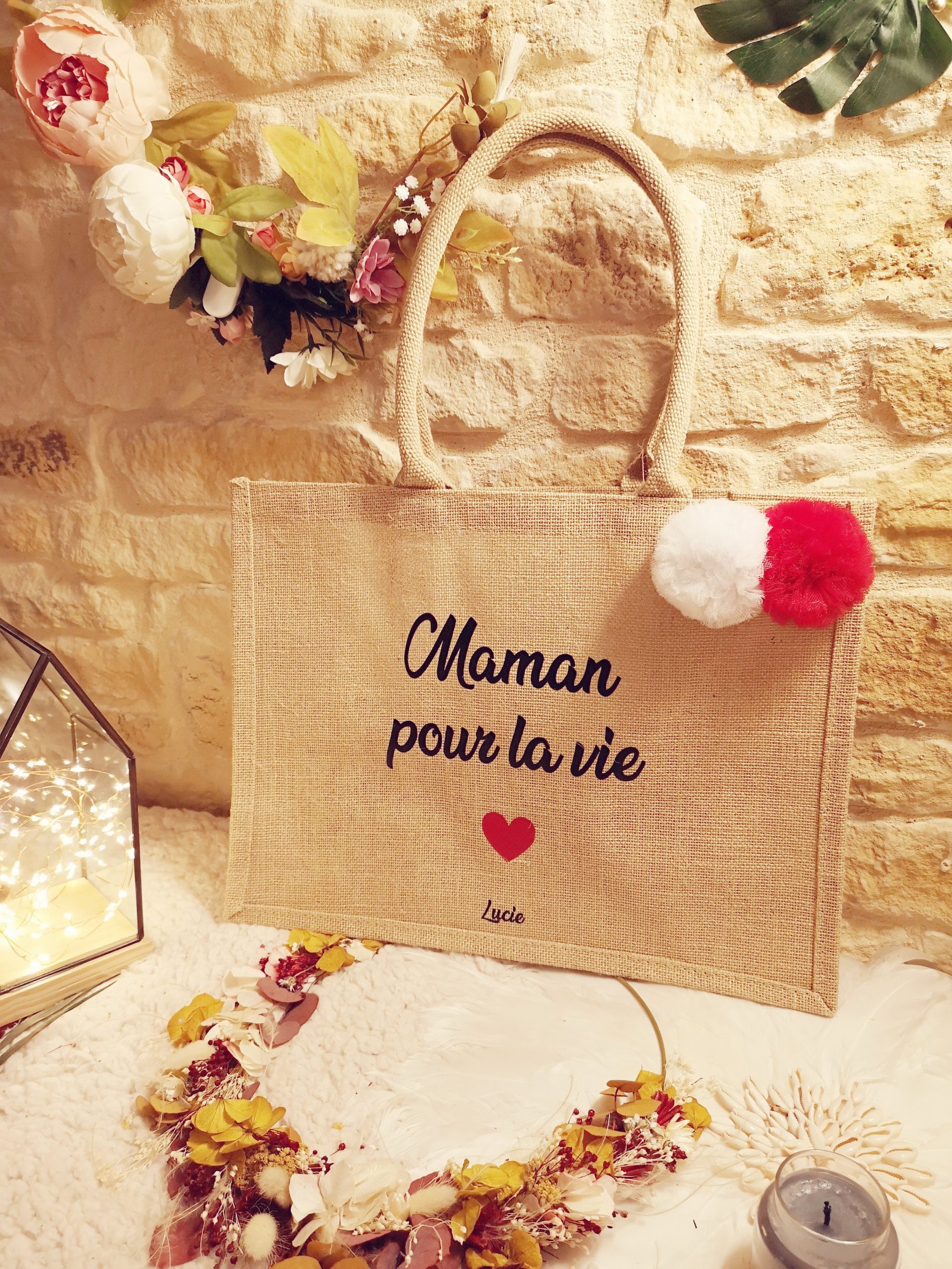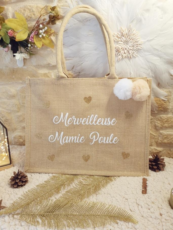 Le grand format anses naturelles Ces cabas en toile de jute peuvent se porter à la main ou à l’épaule grâce à sa anse de 56cm. A vous de choisir votre personnalisation : – Choix du texte et de sa couleur – Choix des décorations : étoiles ou pois argentés, dorés ou rosés – Choix […]