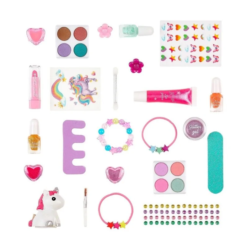Produits inclus : ombres à paupières, gloss, vernis, stickers, tatouages pailletés, accessoires