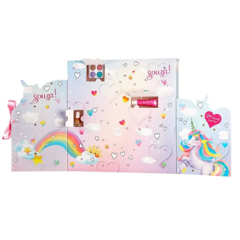 Calendrier de l’Avent Maquillage Souza Beauty – 24 surprises beauté spécialement conçues pour les enfants : ombres à paupières, gloss, vernis et tatouages pailletés.Les produits sont vegan et dermatologiquement testés pour un jeu en toute sécurité.Un calendrier féérique qui rend chaque jour avant Noël encore plus magique ! ✨Dès 5 ans – Idéal en cadeau pour Noël, anniversaire ou Saint-Nicolas.