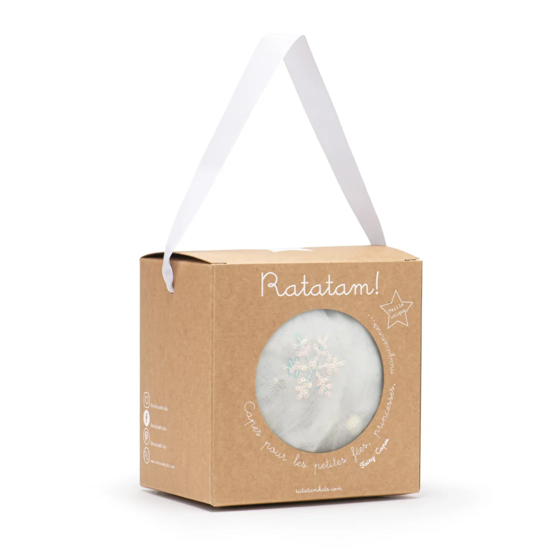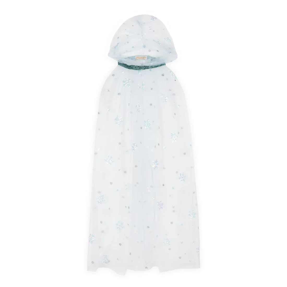 La cape princesse des glaces, c’est une escale au pôle Nord assurée ! Un indispensable de la malle à déguisements! La cape princesse des glaces est en tulle bleu irisé, elle est brodée de sequins étoiles.