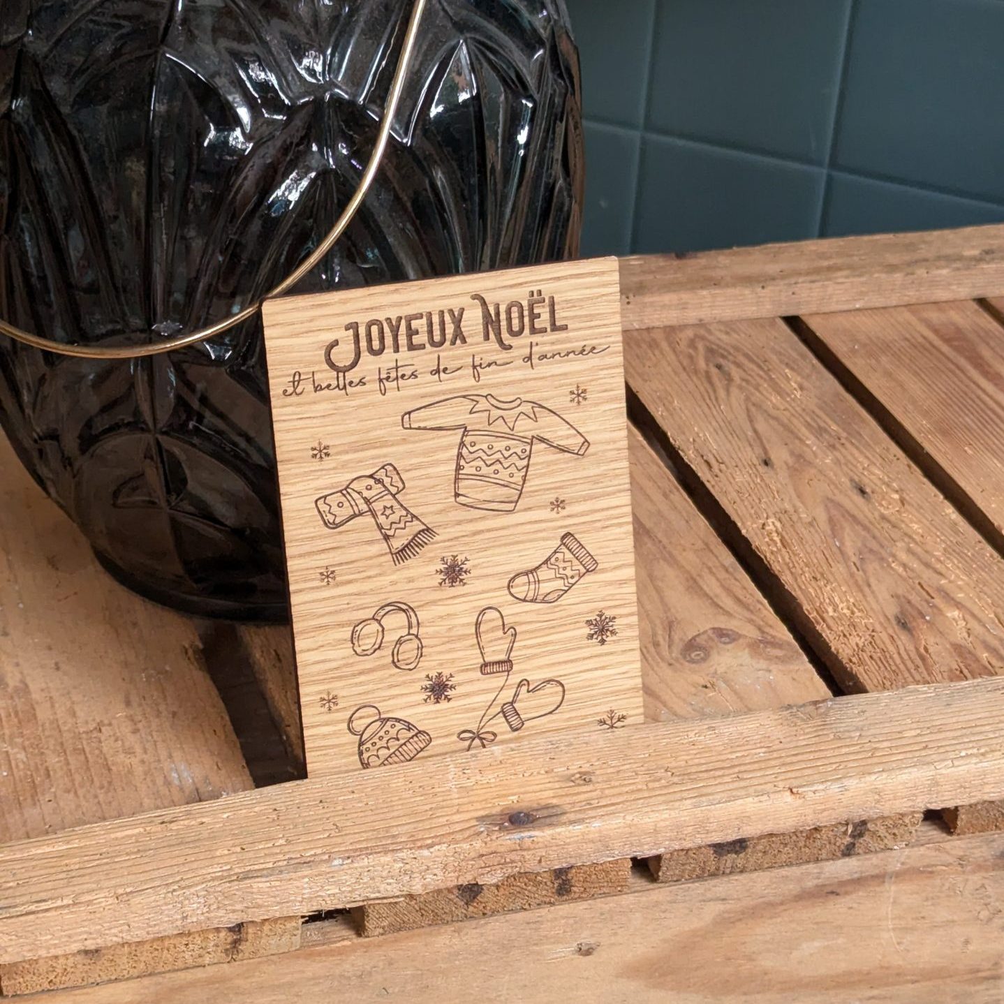 Carte en chêne – Joyeux Noël