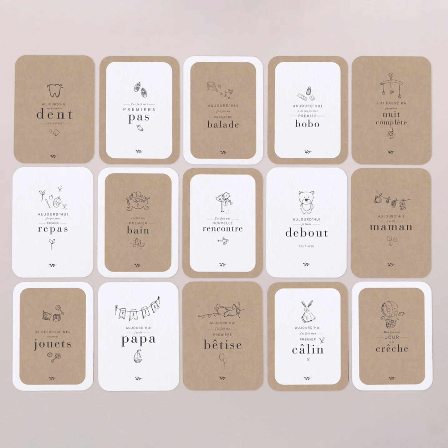Pour célébrer toutes les grandes premières de bébé : sa première dent, son premier bain, sa première grosse colère… Et partager ses moments privilégiés sur les réseaux sociaux avec vos proches et amis. Elles sont vendues dans une jolie pochette pour être offertes comme cadeau de naissance…