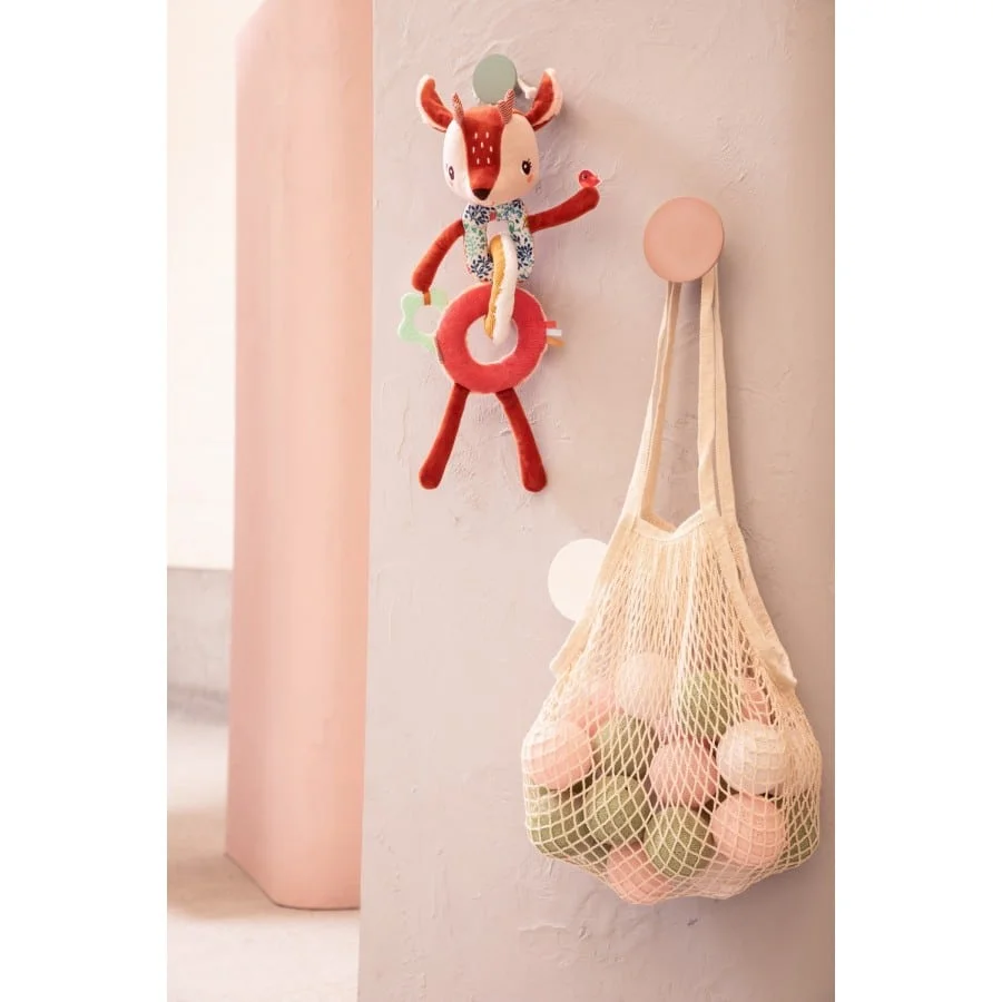 Chaîne d’Activité Stella Le Faon, Lilliputiens. Cette chaîne souple comporte une multitude d’activités pour stimuler les sens de votre petit bout. Des bruits de cliquetis ou de crépitement, des matières variées, un anneau de dentition… autant d’éléments qui encouragent les tout-petits à explorer. Les anneaux de la chaîne sont détachables. Facile à attacher grâce à la ficelle prévue à cet effet. Convient aux enfants de 6 mois et plus.