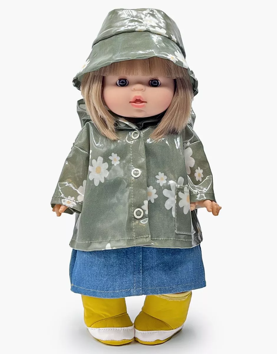 Chapeau de pluie en coton enduit avec doublure en coton et élastique pour poupées et poupons Minikane Gordis 34 & 37cm. Design, développement & confection made in France. Design, development & tailoring made in France.