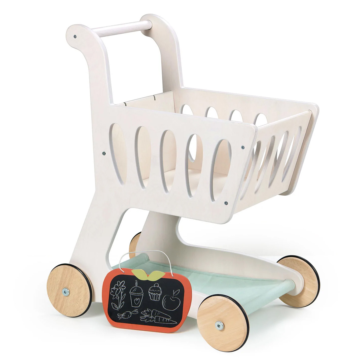 Votre enfant fait comme les grands grâce au chariot de course en bois de la marque Tender Leaf. Conçu de façon éthique. Ce caddy miniature offre ainsi aux enfants la chance d’imiter les grandes personnes tout en explorant le monde coloré du shopping. Un jouet en bois durable, pratique et ludique pour des heures de jeu joyeux.