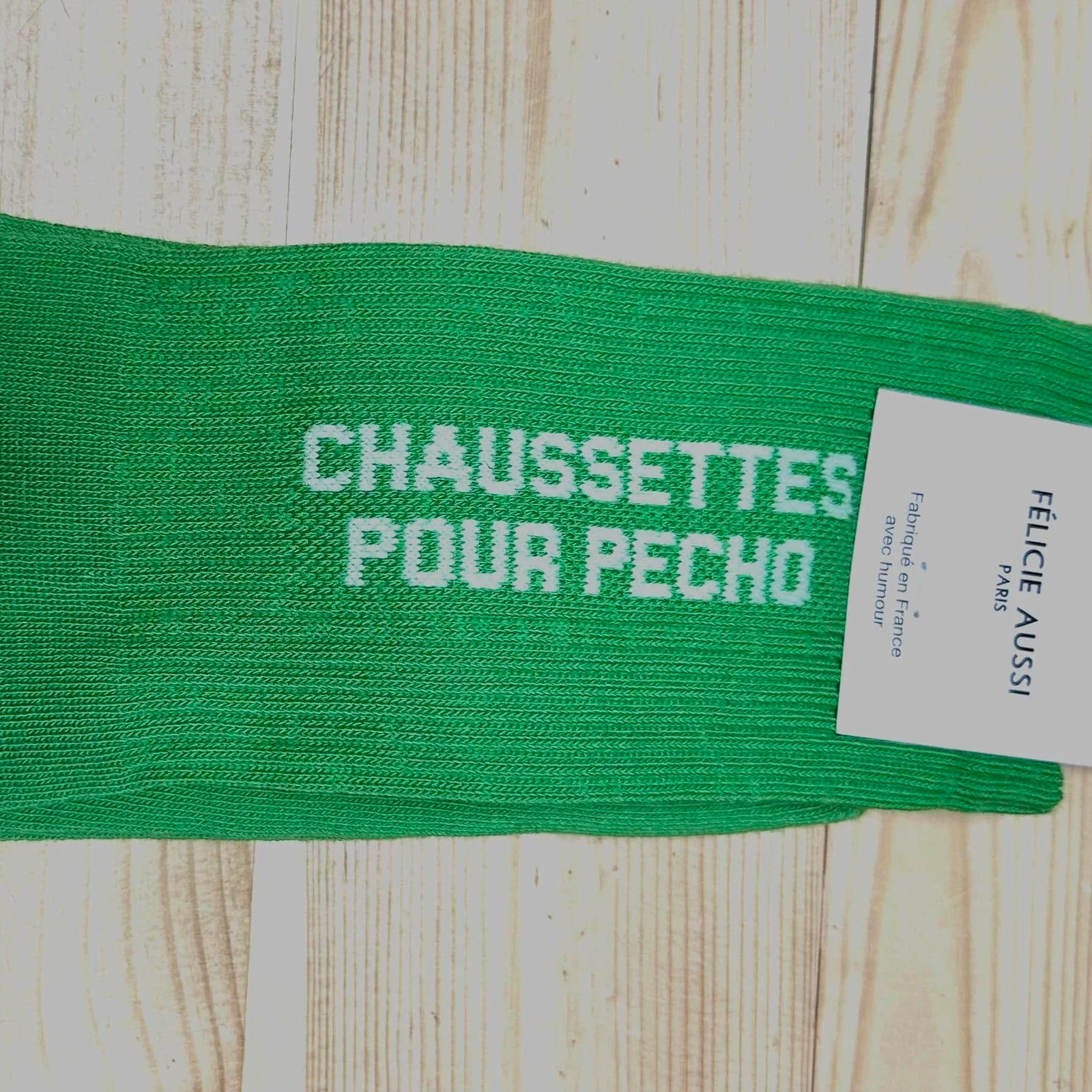 Chaussettes POUR PECHO, Félicie Aussi. Chaussettes pour ne pas se prendre au sérieux et rire de tout (surtout de soi-même!!). Merveilleuses avec les claquettes :-)) . Taille 40-45 Taille 40-45.