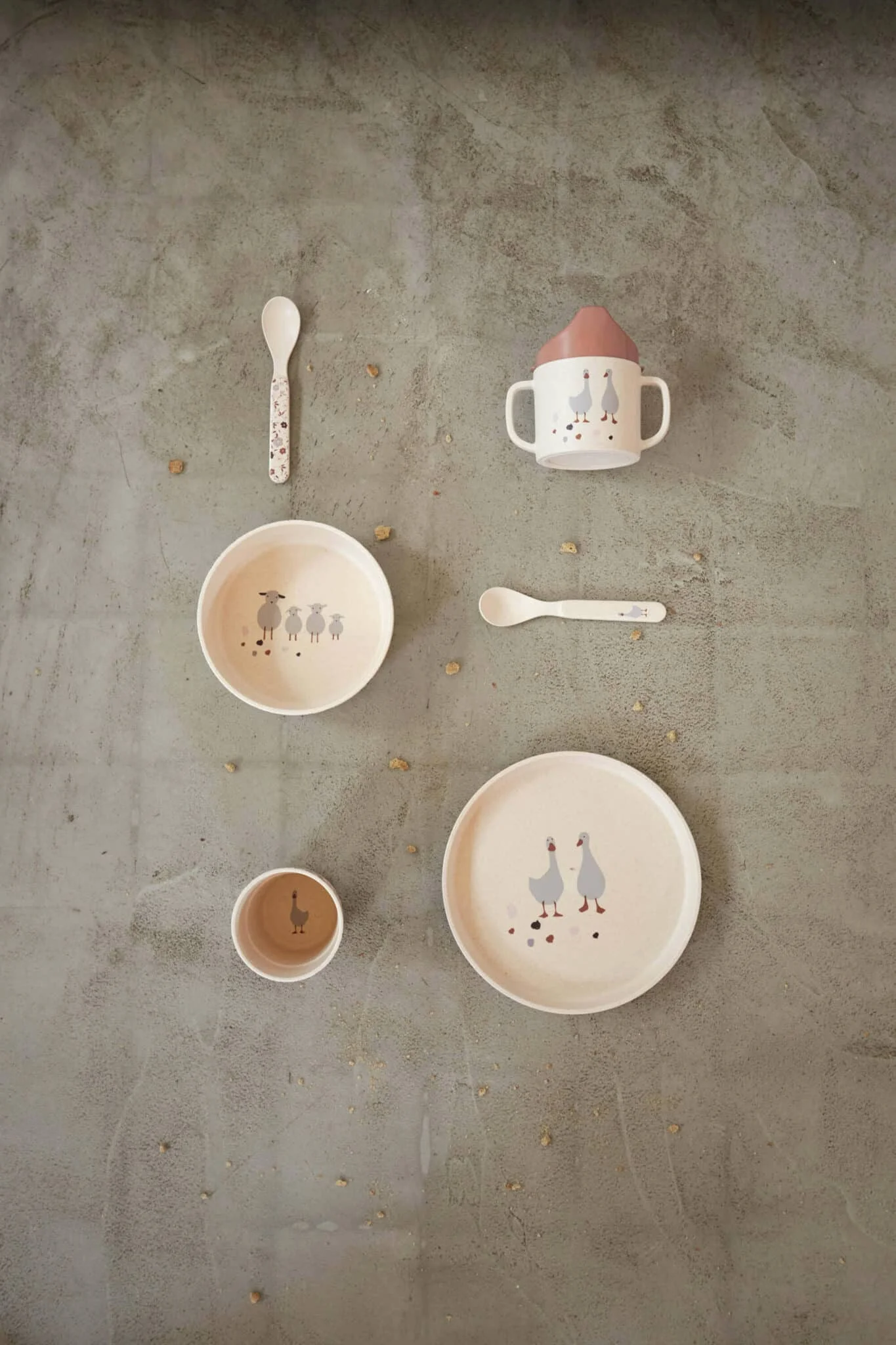 Coffret Repas Enfant Tiny Farmer Mouton & Oie Nature, Lässig. Le coffret repas pour enfants de Tiny Farmer en motif nature est parfaitement adapté aux enfants à partir de 12 mois. Il se démarque par sa fonctionnalité pratique, ses motifs attrayants et sa matière durable. La vaisselle pour enfants est sans BPA et légère pour une utilisation en toute sécurité.