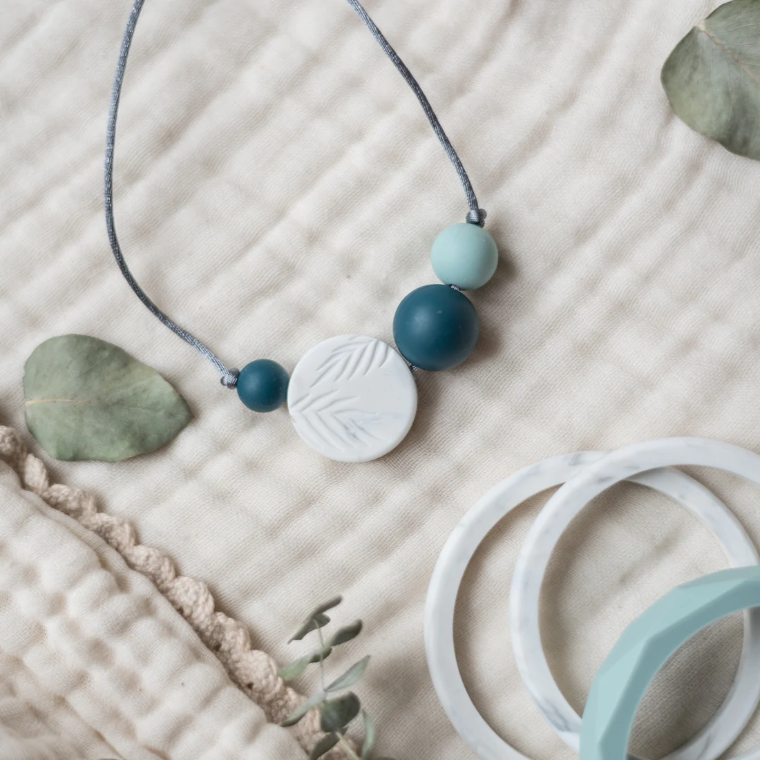 Soyez le premier à laisser votre avis sur “Collier allaitement, portage et de dentition Palm sunrise | Blanc et menthe”