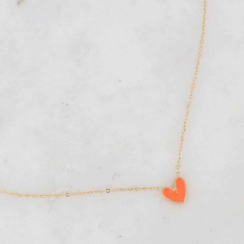 Collier Cœur Orange Un joli collier fin, en chaîne dorée, avec son petit cœur en émail orange pour le printemps !