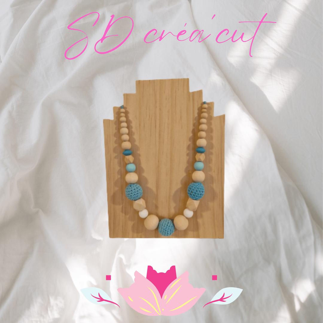 Ajoutez dès maintenant votre Collier d’Allaitement Bleu et Bois à votre panier et profitez d’un envoi rapide et sécurisé ! 💙