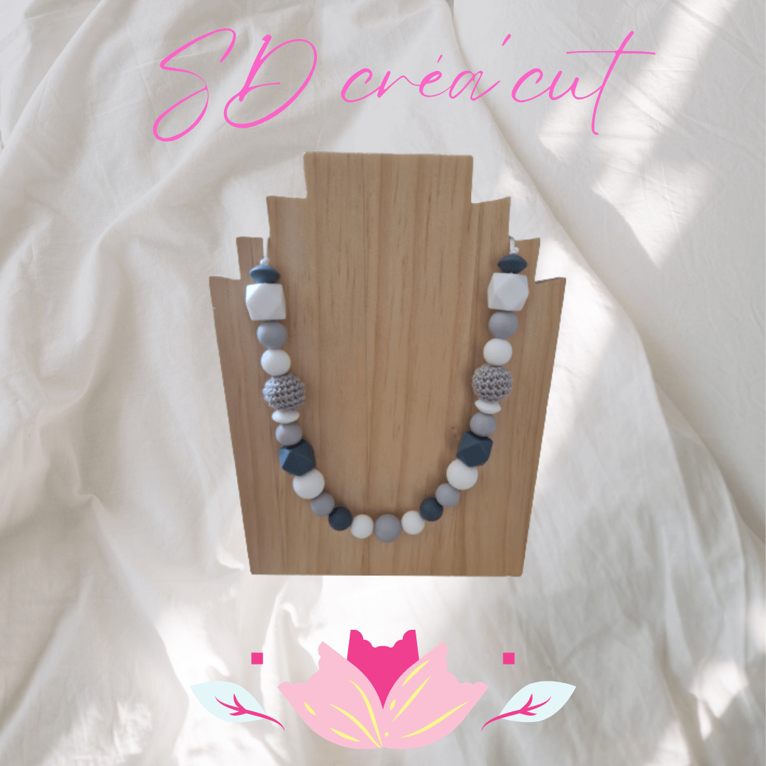 ⭐ Collier d’Allaitement en Silicone Gris – Sécurité et Élégance pour Maman et Bébé