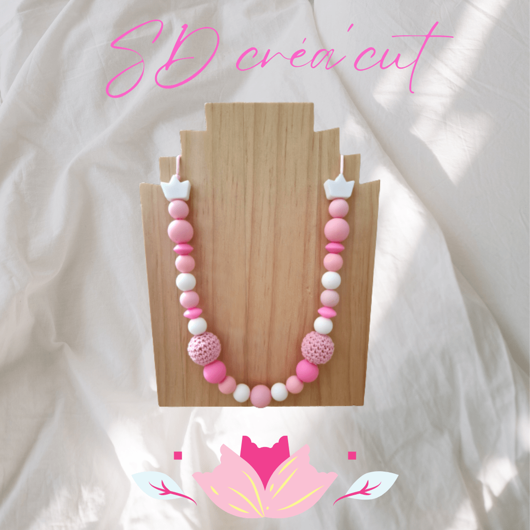 Collier d’Allaitement en Silicone Rose et Blanc – Confort, Sécurité et Élégance