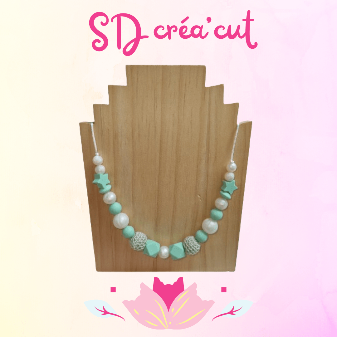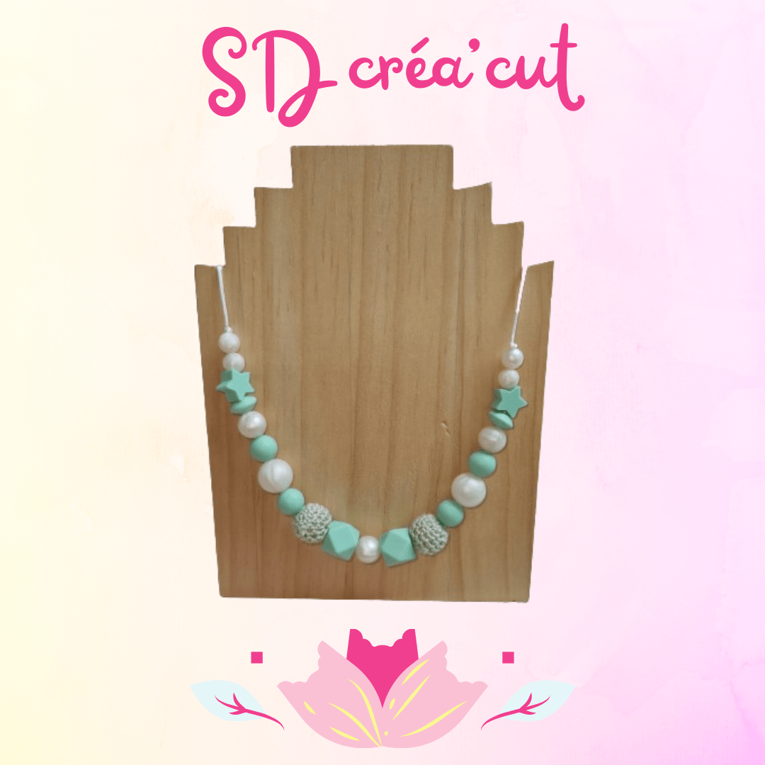 Je mets tout mon savoir-faire dans chaque création pour vous proposer un bijou à la fois sécurisé, élégant et unique. Craquez dès maintenant pour ce Collier d’Allaitement en Silicone Vert d’Eau et Nacré, un accessoire indispensable pour allier maternité et style ! 💚