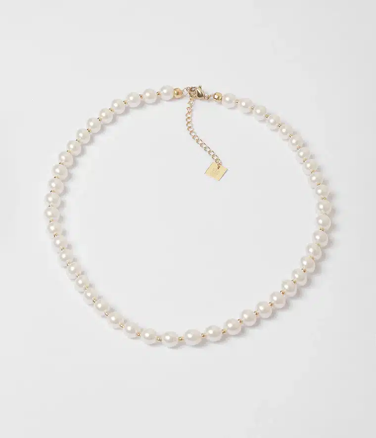 Collier élastique en acier doré à l’or fin parsemé de perles en verre nacrées. Il vous assurera un style très chic !