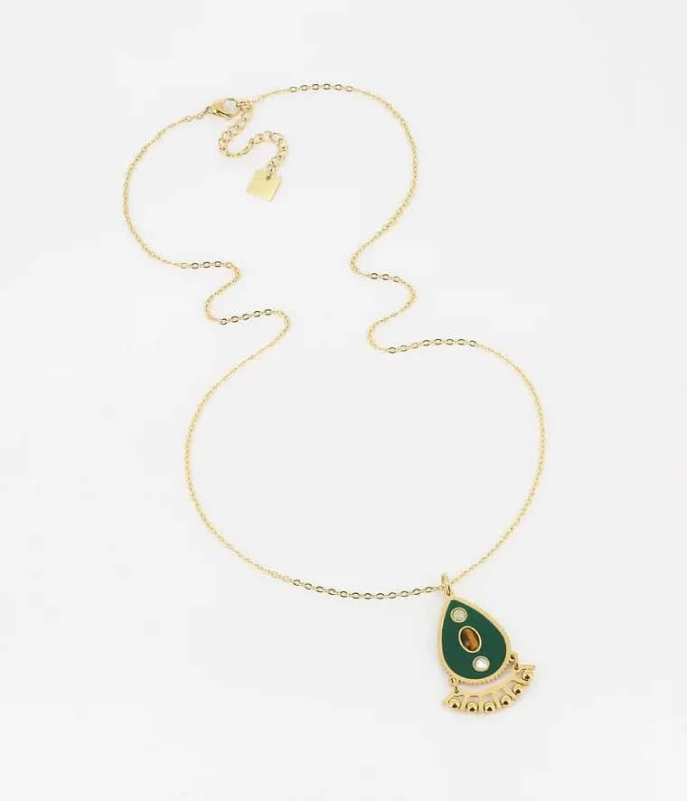 Collier Maya Green, Zag. Collier en acier doré à l’or fin sur lequel est suspendu un pendentif aux inspirations ethniques.