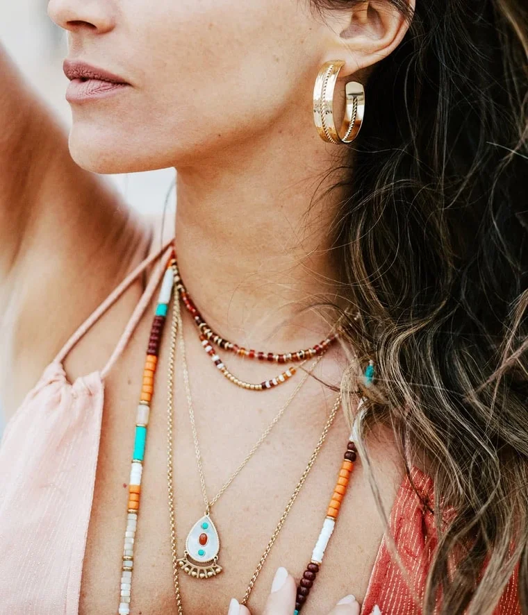 Composition : Collier en acier doré à l’or fin sur lequel est suspendu un pendentif aux inspirations ethniques.