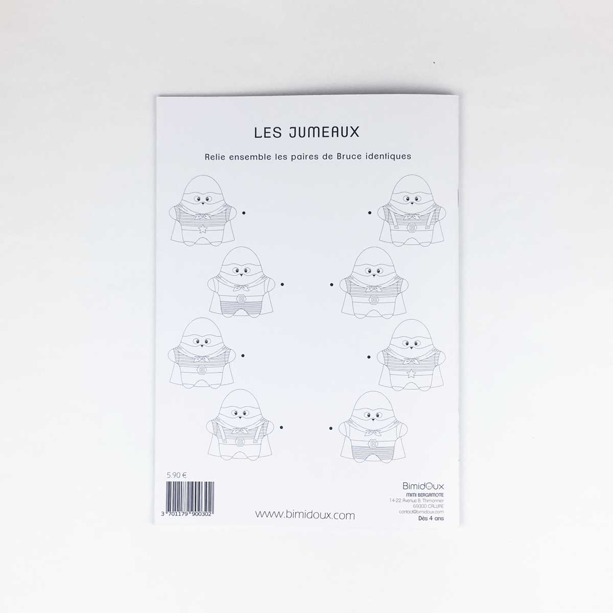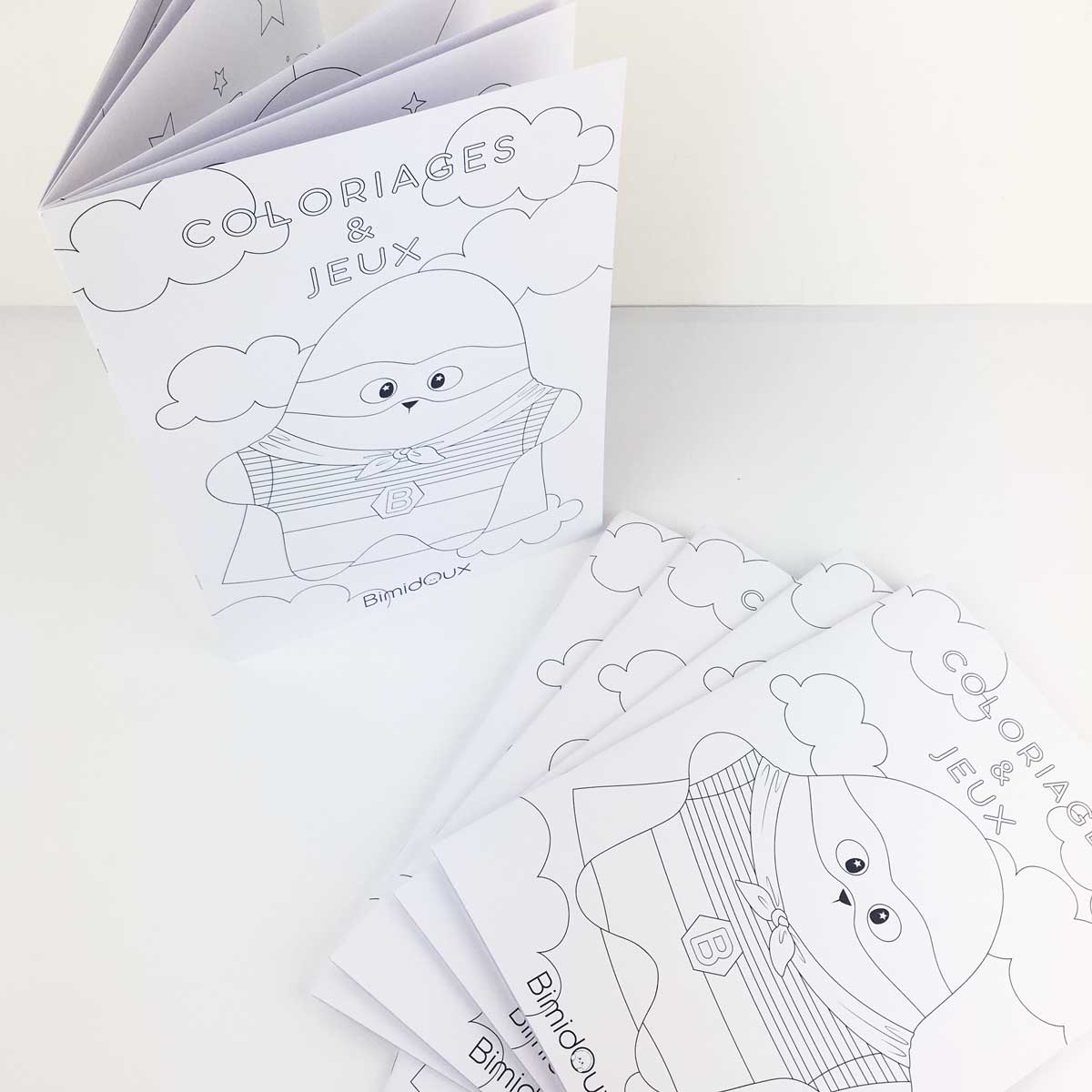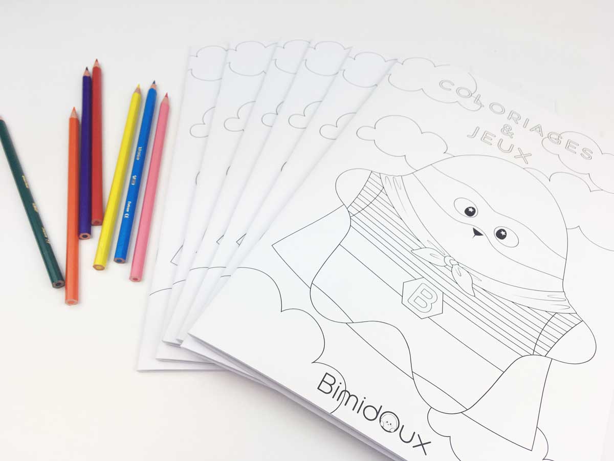 Notre cahier de coloriages et de jeux vous permettra de passer un moment ludique avec votre enfant. Composé de 16 pages, il alterne des pages à colorier et jeux ( 7 erreurs, labyrinthes, mots mêlés …) pour se plonger dans l’univers de Bimidoux. Tout est réunis pour développer la créativité en s’amusant !