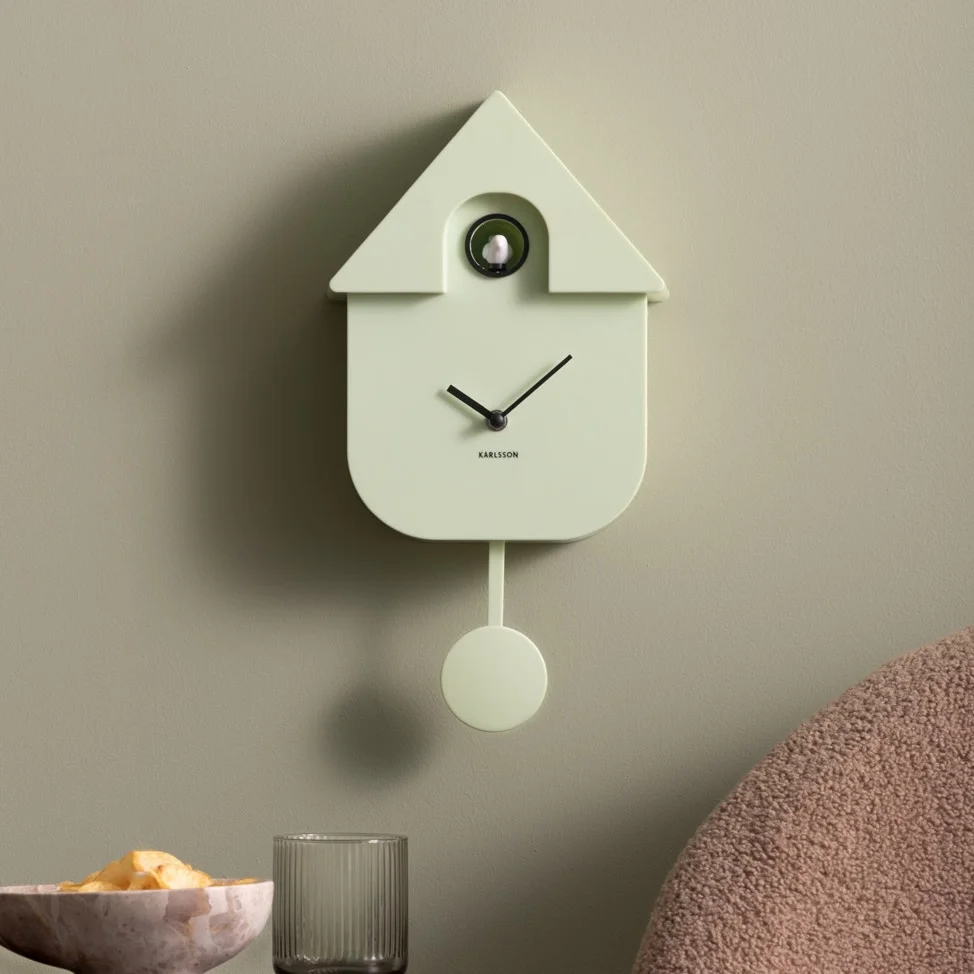 L’horloge Modern Cuckoo de Karlsson donne un nouveau souffle au coucou classique : une touche design, un balancier hypnotisant, et une couleur douce pour une déco chic et moderne.