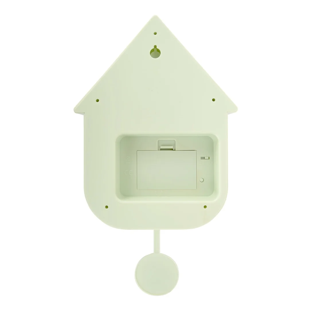 Avec sa silhouette élancée (41 cm de haut) et sa teinte soft green apaisante, elle devient une pièce maîtresse de votre décoration. Le balancier en mouvement ajoute une dynamique visuelle tout en douceur, tandis que le petit oiseau se fait entendre à chaque heure, apportant une touche ludique et poétique sans jamais perturber l’ambiance.