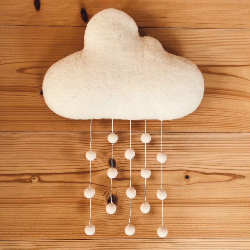 Pour un effet encore plus onirique, suspendez ce nuage au-dessus d’un lit d’enfant, d’un berceau, ou au mur d’un coin lecture avec une guirlande lumineuse en arrière-plan. Associez-le à d’autres éléments en feutrine pour créer une composition murale douce et inspirante.