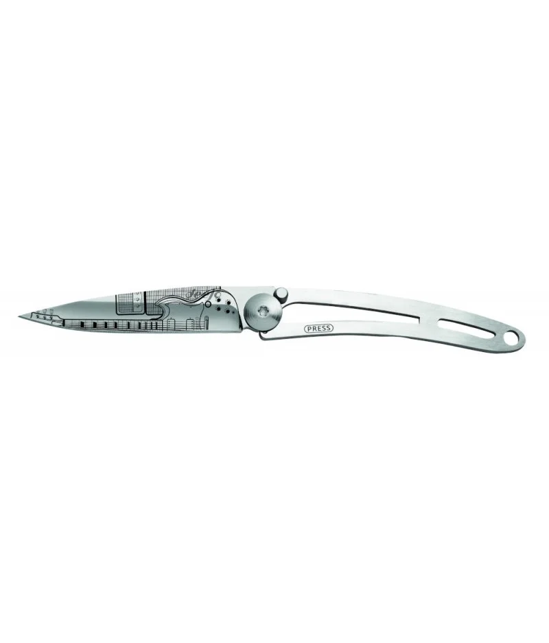 Mini couteau Deejo finition miroir à suspendre en porte-clés. Léger (15 g), pratique et élégant. Lame tatouée de 12,5 cm.