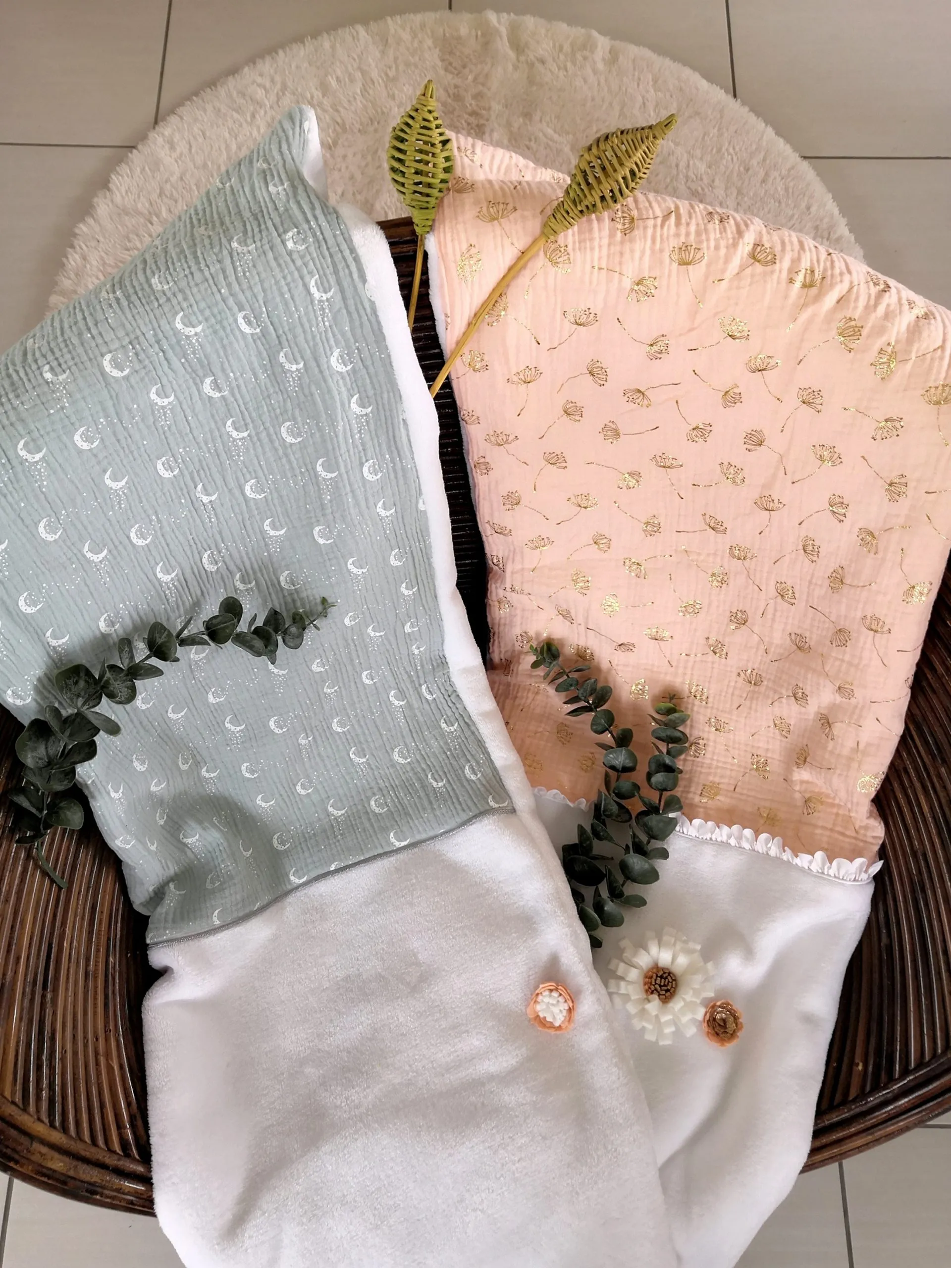 Couverture bébé douillette mais légère. Idéale pour la belle saison. Un joli passepoil pétale pour un design épuré.