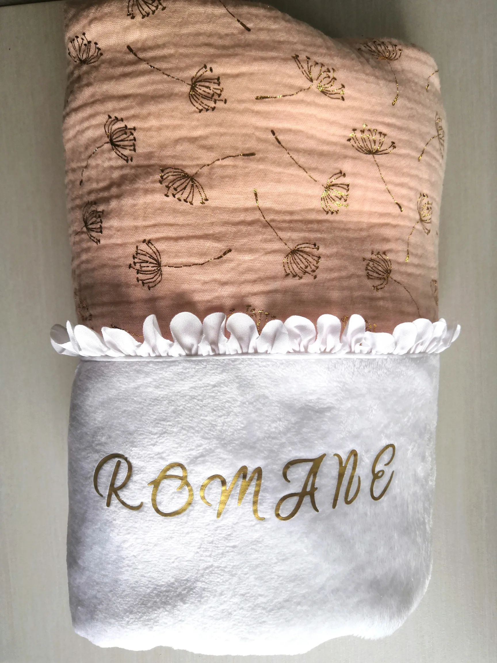 Soyez le premier à laisser votre avis sur “Couverture bébé légère rose pêche, personnalisable”