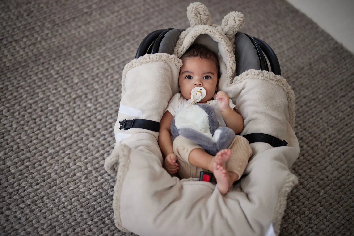 Cette couverture peut être utilisée dès la naissance. Et aussi très pratique à utiliser dans le premier siège d’auto de bébé. Les ceintures du siège d’auto peuvent être retirées par les ouvertures de la couverture afin que votre bébé puisse rester confortablement dans la couverture. Il s’agit d’une couverture enveloppante universelle pour le Maxi Cosi et tout autre siège auto de catégorie 0 de marque avec ceinture à trois ou cinq points.