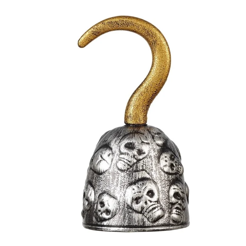 Un crochet doré orné de crânes, idéal pour incarner un vrai capitaine pirate ! Léger et solide, il complète parfaitement un déguisement d’enfant.