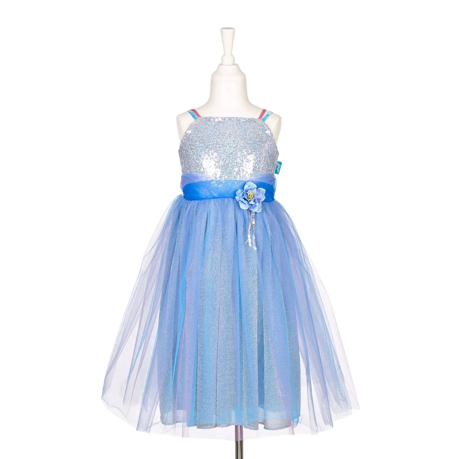 Déguisement Robe Céléna, Phanine. La robe Celena de la collection Souza for Kids est une élégante tenue de couleur bleue et argentée. Cette magnifique robe est dotée d’un jupon en tulle parsemé de paillettes, offrant des nuances de rose étincelantes.