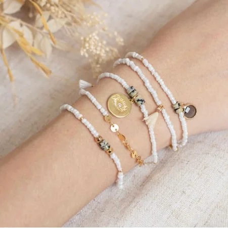 DIY Bracelet Perles Multi rangs, La Petite Epicerie. A vous de créer votre propre bracelet multi rangs en perles de rocailles, des perles de Jaspe et une breloque dorée.
