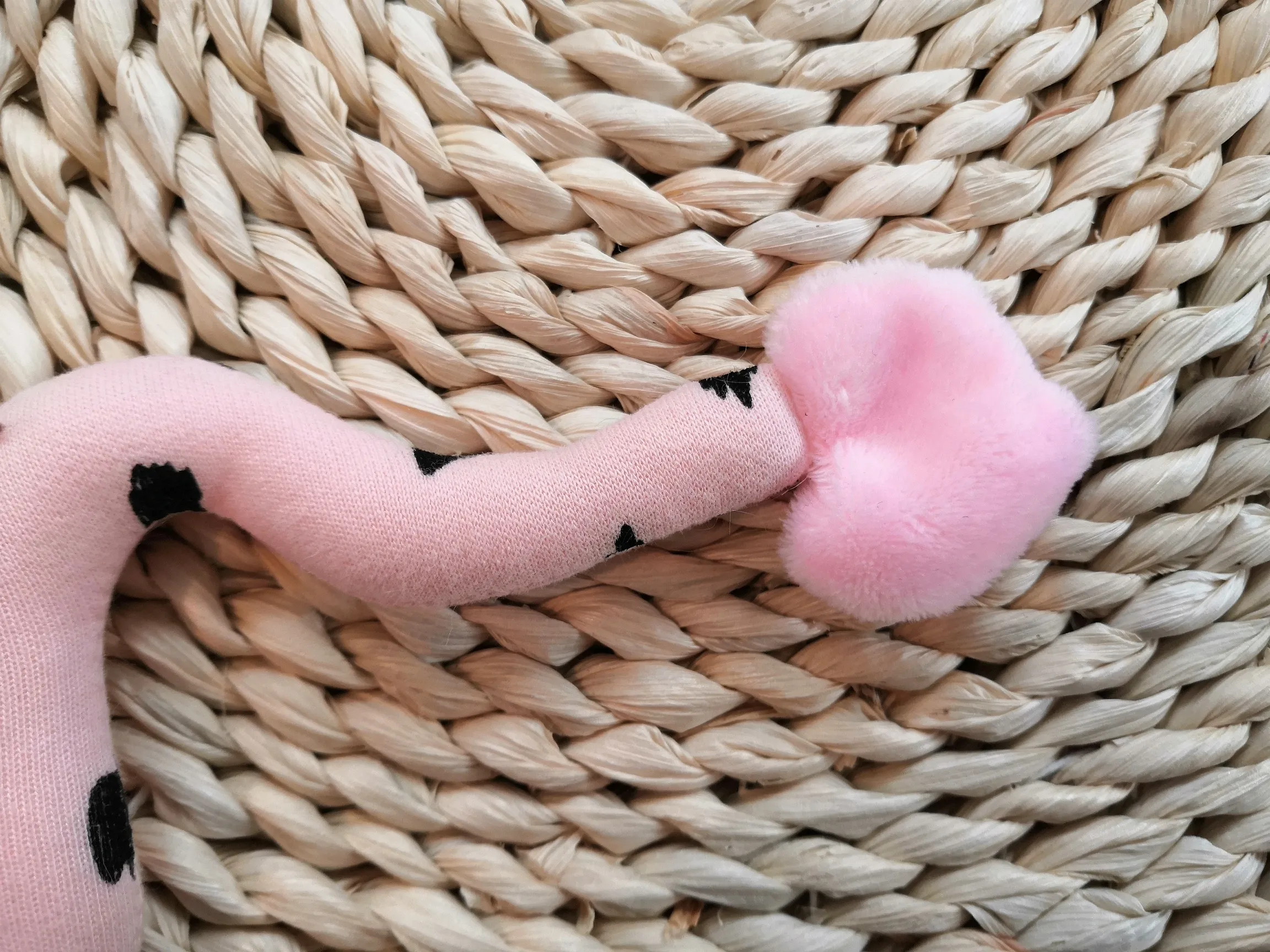 - petite queue avec bout en tissu tout doux. Bébé l’attrapera facilement et pourra le transporter partout. A savoir qu’elle pourra aussi procurer un contact rassurant entre les mains de bébé.
