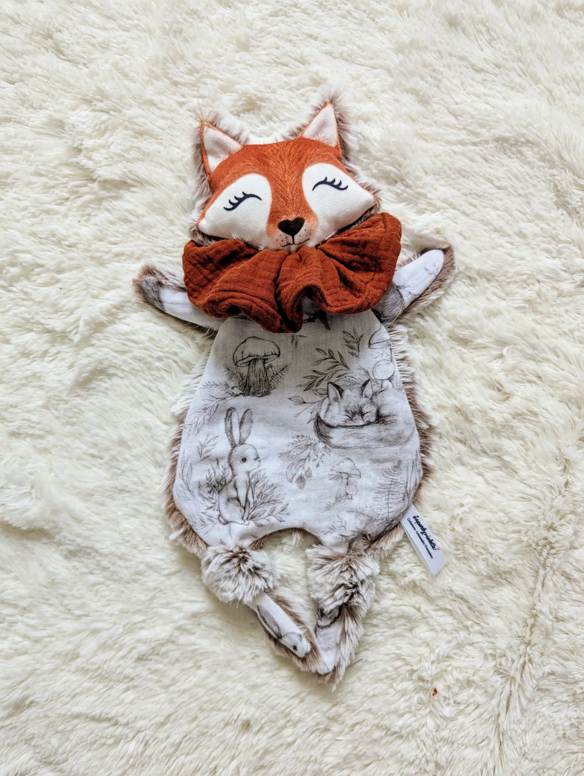 Doudou Renard pourra être personnalisé pour en faire un doudou unique. Pour cela il vous suffit d’indiquer le numéro du tissu souhaité pour le corps du doudou et la collerette.