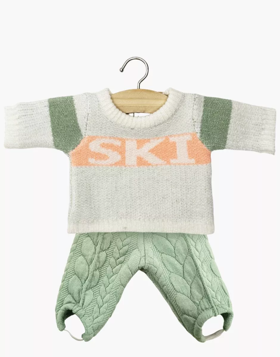 Ensemble pull « SKI » en tricot et fuseau Popeye en molleton torsadé pour poupées et poupons Minikane Gordis 34 & 37cm, Cuties 36cm et Babies 28cm. Composition du tricot : 55% laine, 40% acrylique, 5% spandex | lavable à la main Designé & développé en France. Confectionné en Indonésie Knitting composition : wool 55%, acrylic 40%, spandex 5% | hand washable Design & development in France, tailoring made in Indonesia.