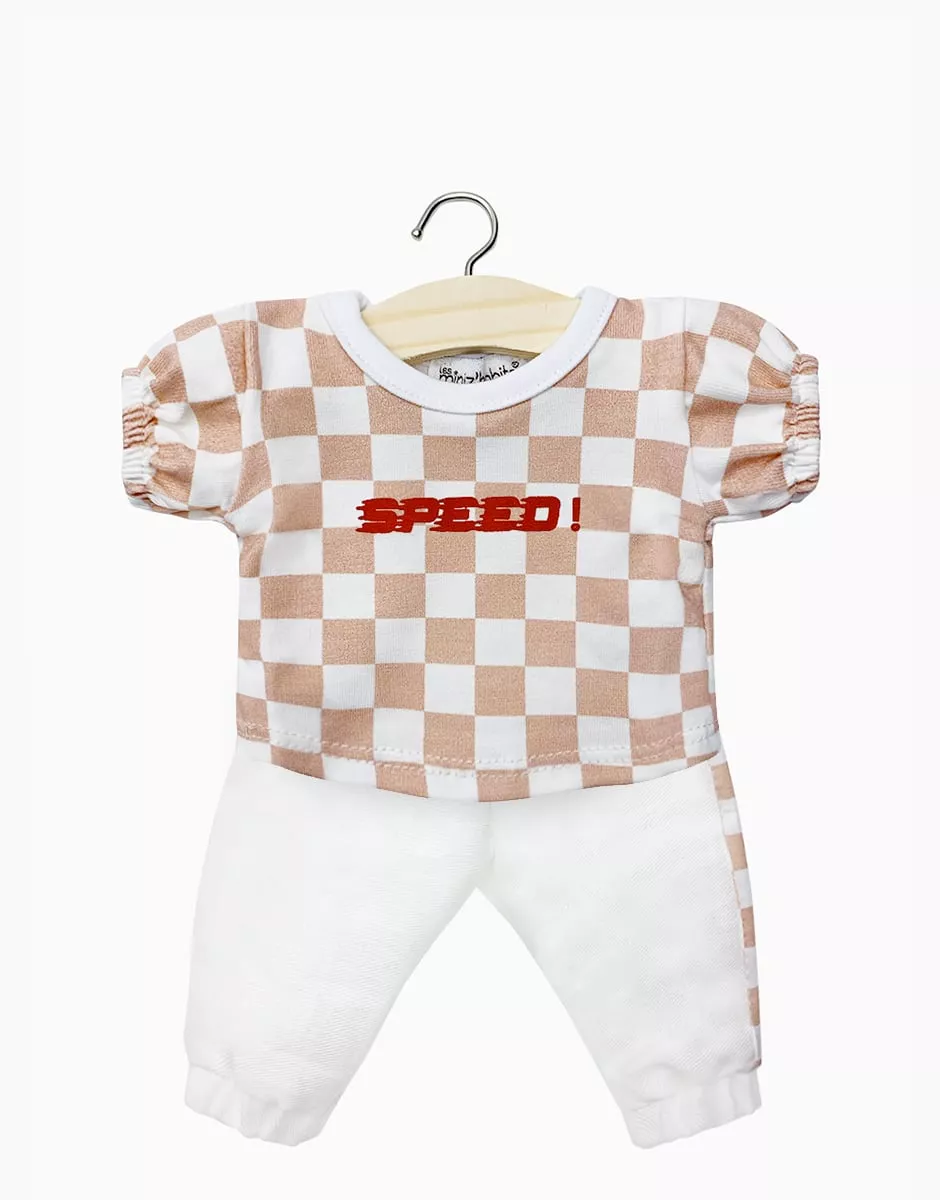 Ensemble T-shirt Lilou “SPEED!” et son pantalon Katherine pour poupées Minikane Gordis 34 & 37cm. Design, développement & confection made in France. Design, development & tailoring made in France.
