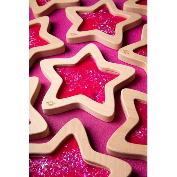 Cette étoile Sensorielle est bien plus qu’un simple jouet. Elle combine des éléments visuels et tactiles pour éveiller ainsi les sens de votre bébé. Le cadre en bois de hêtre est facile à saisir pour les petites mains. À l’intérieur, un liquide coloré, des paillettes scintillantes et un fluide fluorescent créent un spectacle visuel captivant. De plus, l’intérieur est entièrement scellé et étanche, garantissant ainsi une manipulation sûre pour les tout-petits.