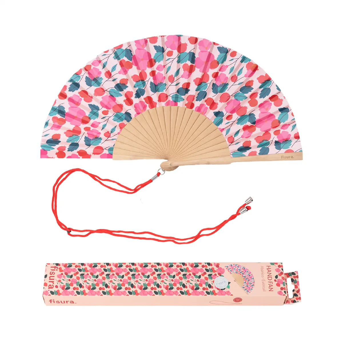 Offrez-vous un moment de fraîcheur fleuri avec l’éventail Fleurs de Fisura. Chaque geste devient une caresse d’air, comme si vous traversiez un champ en fleurs au printemps. Son imprimé romantique aux tons roses et rouges apporte une touche poétique à votre look estival, pour un accessoire aussi pratique que ravissant.