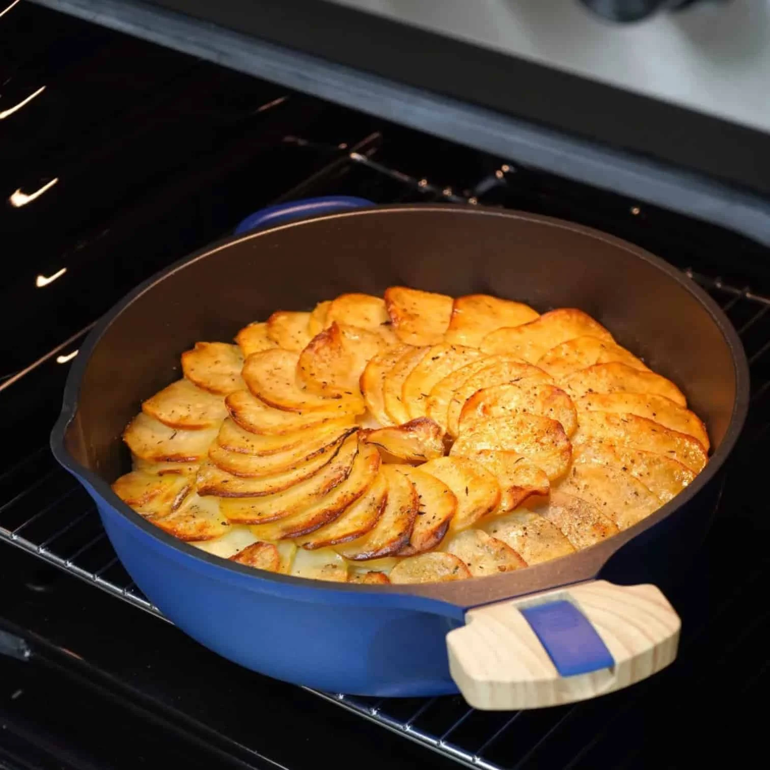 Découvrez La Fabuleuse, la poêle à tout faire qui remplace 8 ustensiles de cuisine. Cette poêle polyvalente vous permet de préparer une large gamme de plats. Vous pouvez aussi bien cuisiner des œufs au plat, des poulets rôtis, en passant par les légumes vapeur. Elle est idéale pour la blanquette de veau, les frites, les gratins, les gâteaux et même les pizzas. Avec La Fabuleuse, toutes les possibilités culinaires s’offrent à vous !