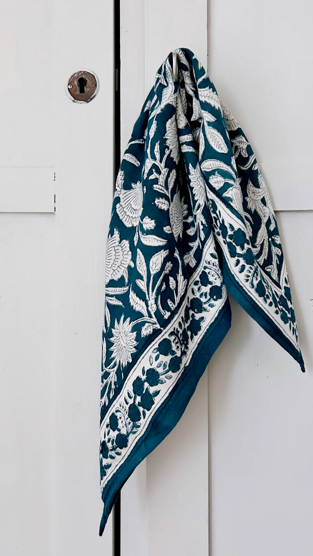 Fabriqué selon la méthode traditionnelle du block-print, chaque foulard est unique. Ce savoir-faire ancestral indien consiste à imprimer manuellement les motifs à l’aide de tampons en bois sculptés. Les pigments utilisés sont d’origine naturelle. Ce qui rend chaque pièce respectueuse de la peau et de l’environnement. Grâce à cette technique artisanale, des irrégularités peuvent apparaître. Soulignant ainsi le caractère authentique du produit.