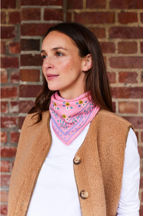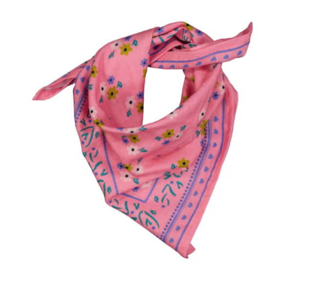Foulard rose fleuri 50cm – Frangin Frangine