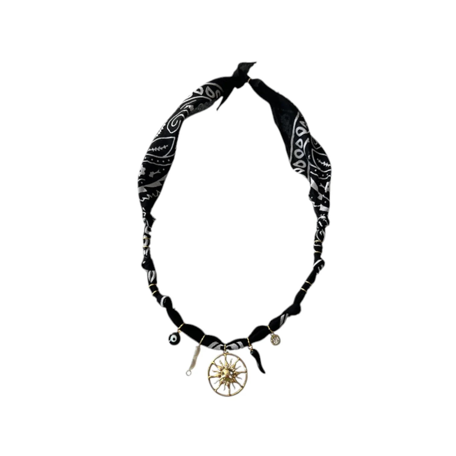 Découvrez la Gamme de Colliers Astro Noir, Badhnati. Ces bijoux faits à la main allient l’élégance et l’authenticité du style astro. Ces colliers, fabriqués en bandana, arborent des grigris inspirés de l’univers astro, tels que des lunes, des soleils, des piments… Mesurant entre 60 et 75 cm, vous pouvez porter chaque collier seul pour un look sophistiqué ou les accumuler avec d’autres colliers pour un style plus audacieux. Ce sont les accessoires parfaits pour rehausser vos tenues décontractées ou pour une sortie spéciale.