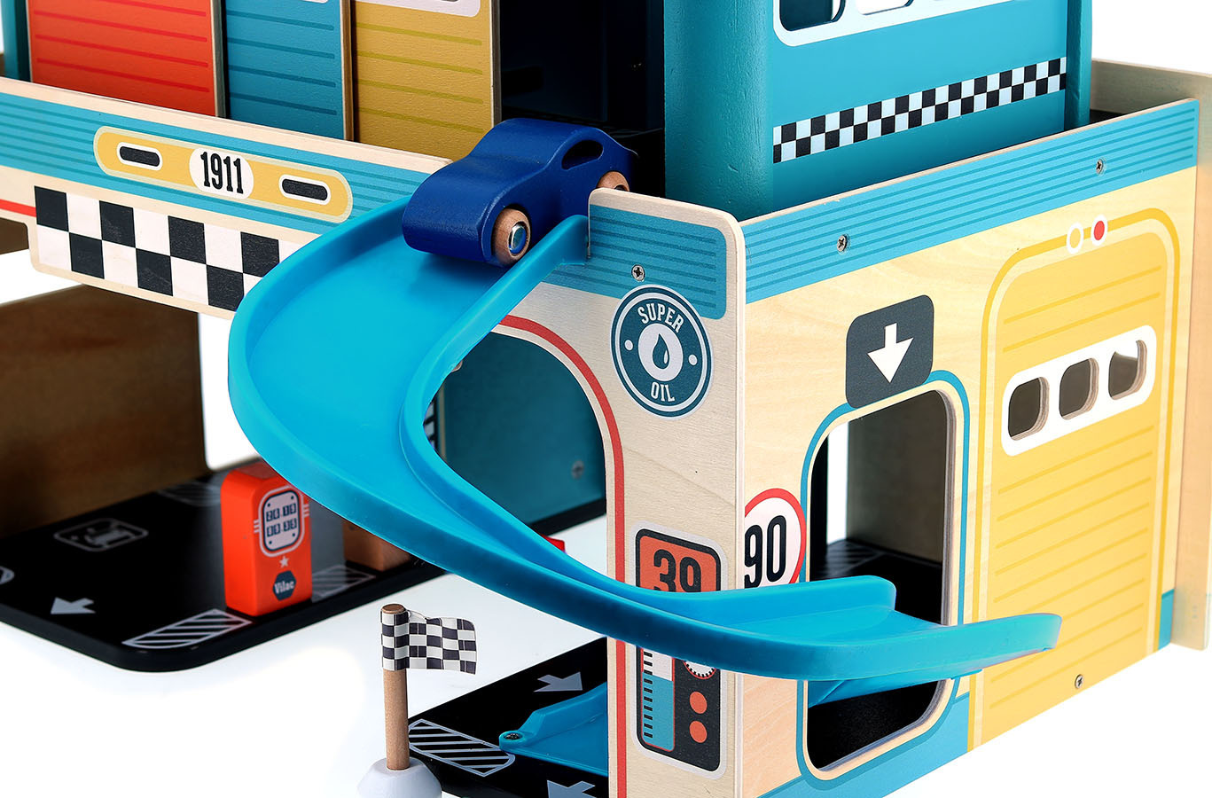 Le garage en bois enfant Vilacity Vilac réunit esthétique, durabilité et plaisir, pour offrir aux petits pilotes un terrain de jeu riche et stimulant.