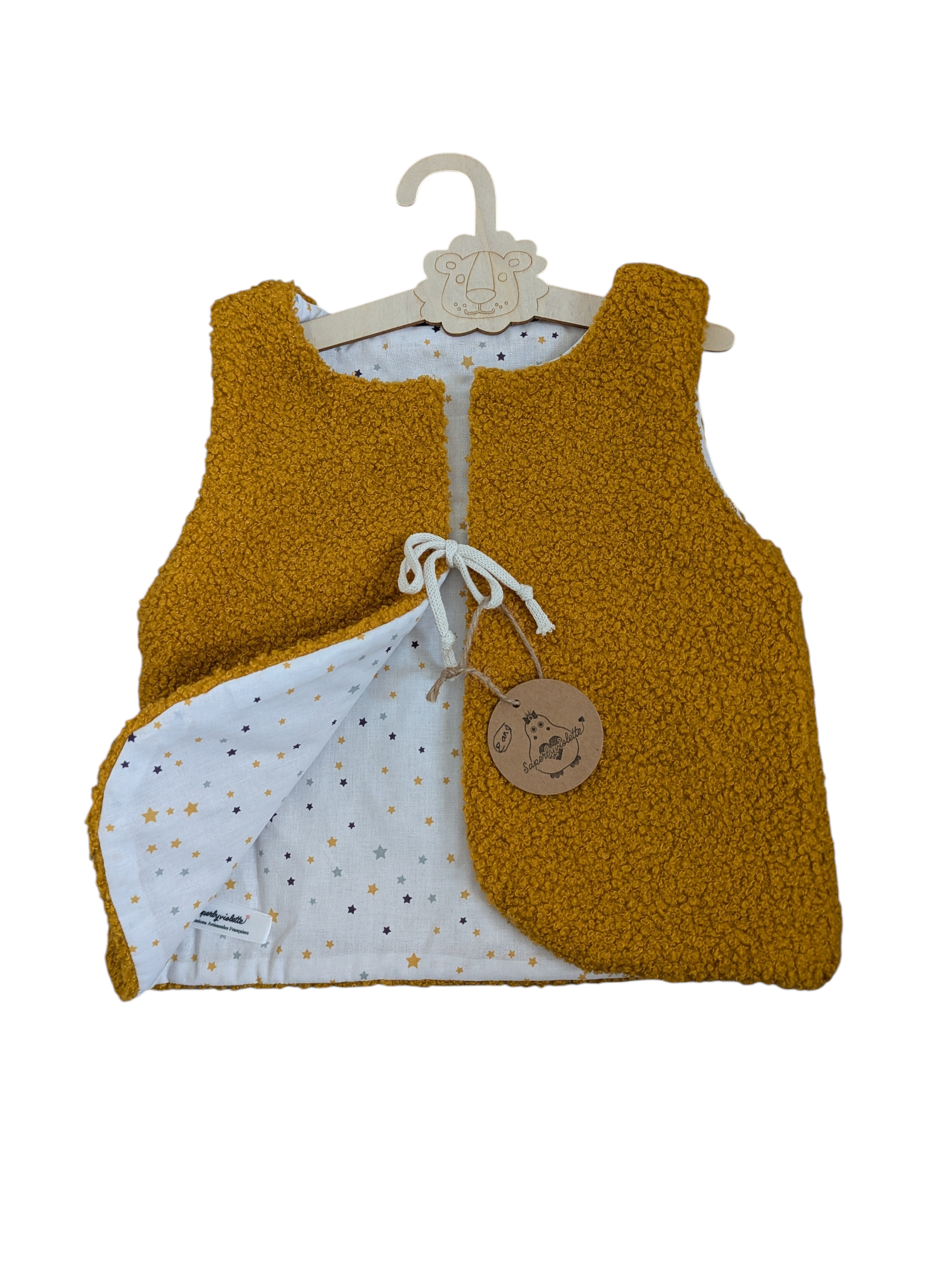 Indispensable dans la garde de robe de bébé, le gilet de berger réversible. Un côté douillet (sherpa, fausse fourrure ou minky très doux), un côté coton ou jersey. En stock, expédié sous 2 à 3 jours.