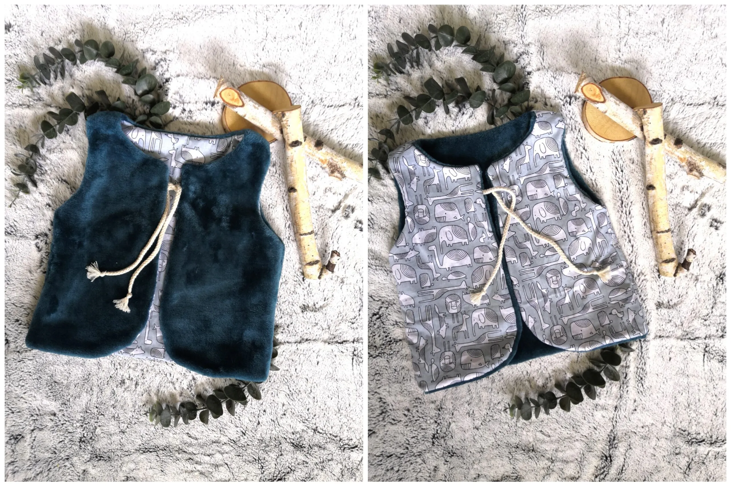 Indispensable dans la garde de robe de bébé, le gilet de berger réversible. Un côté douillet (sherpa, fausse fourrure ou minky très doux), un côté coton ou jersey. En stock, expédié sous 2 à 3 jours.