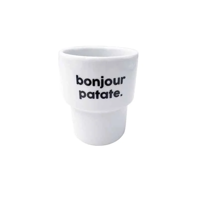 Gobelet empilable en porcelaine signé Félicie Aussi décoré d’un message ludique et plein d’humour. Entre petits noms doux et tendres injures, trouvez le gobelet idéal (ou pas) pour vos proches !