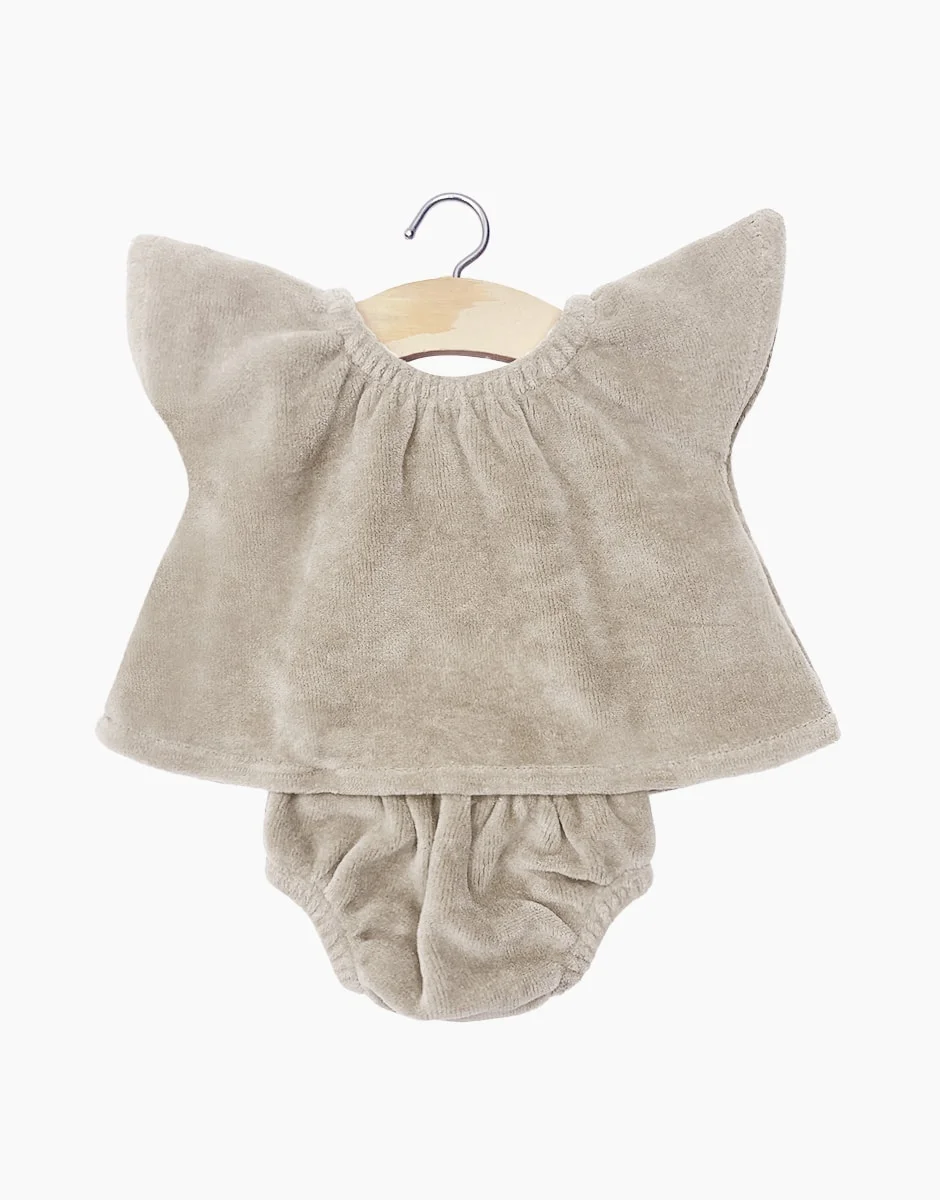 Gordis – Ensemble top Mazarine et culotte en velours gris perle, Minikane