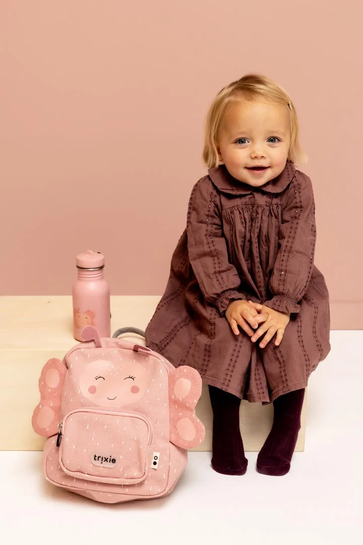 Gourde 350 ml en inox Mrs. Butterfly de Trixie. Étanche, solide et facile à ouvrir, elle accompagne les enfants dans toutes leurs aventures.