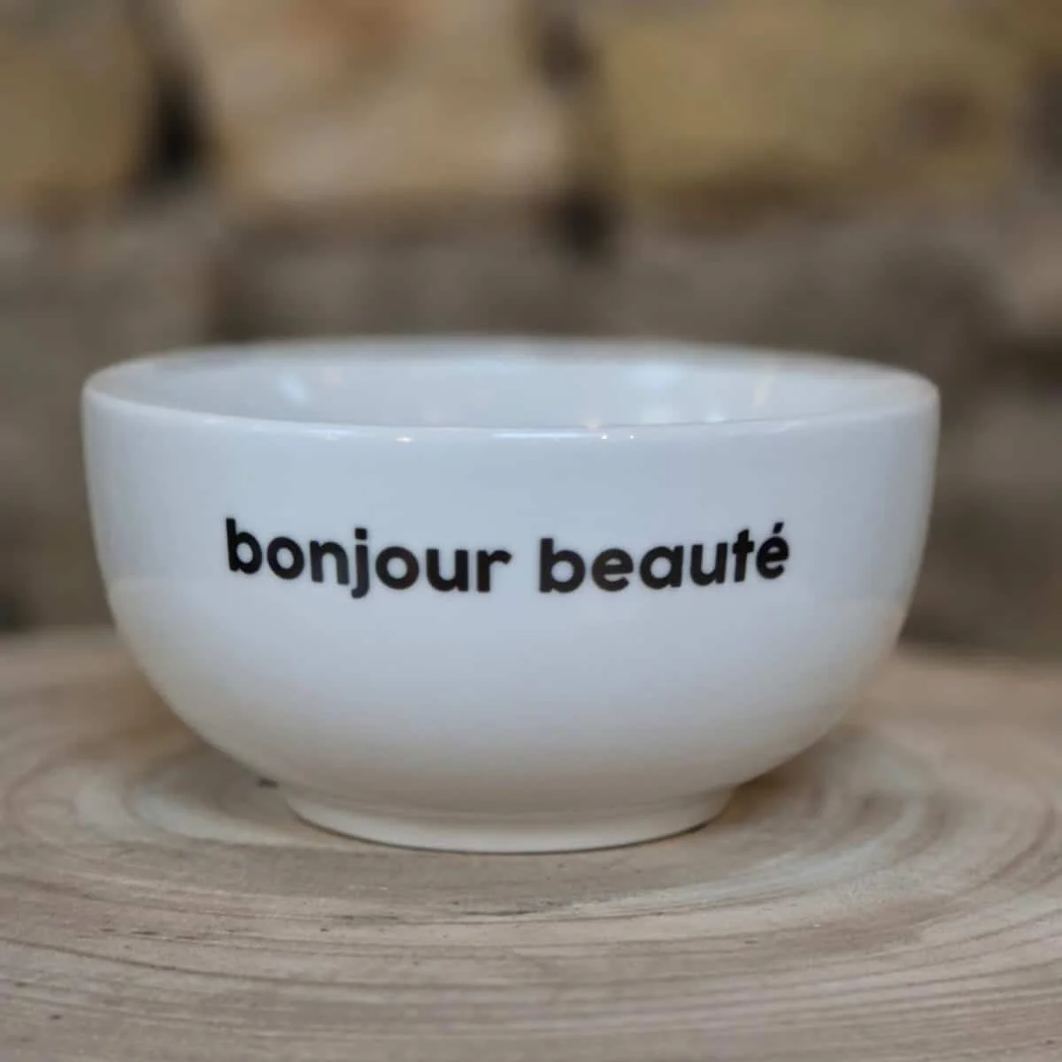Grand Bol Bonjour Beauté, Félicie Aussi. Grand bol en porcelaine signé Félicie Aussi décoré d’un message ludique et plein d’humour. Entre petits mots doux et tendres injures, trouvez le bol idéal (ou pas) pour vos proches !