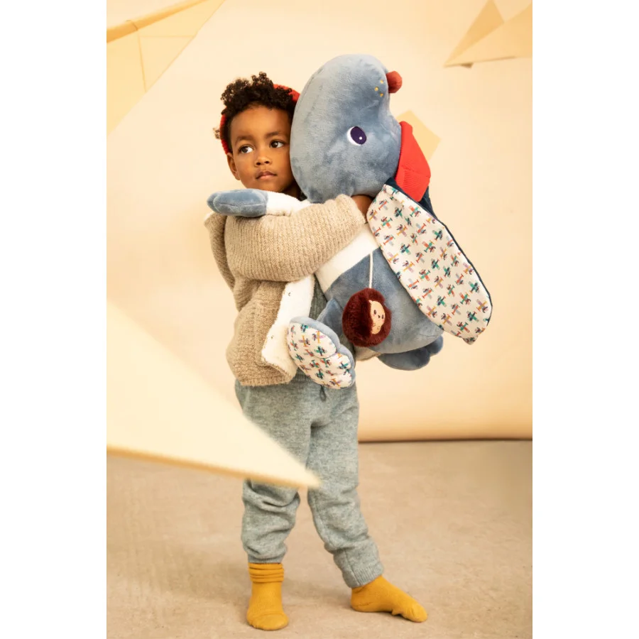Ce chien bleu ciel, un brin maladroit mais plein de tendresse, émerveille par ses textures, ses couleurs apaisantes et ses motifs ludiques. Ses grandes dimensions en font un compagnon rassurant et un bel élément de décoration pour la chambre. Entre doudou, coussin et centre d’activités, Jules incarne à merveille l’esprit doux et aventureux de Lilliputiens.